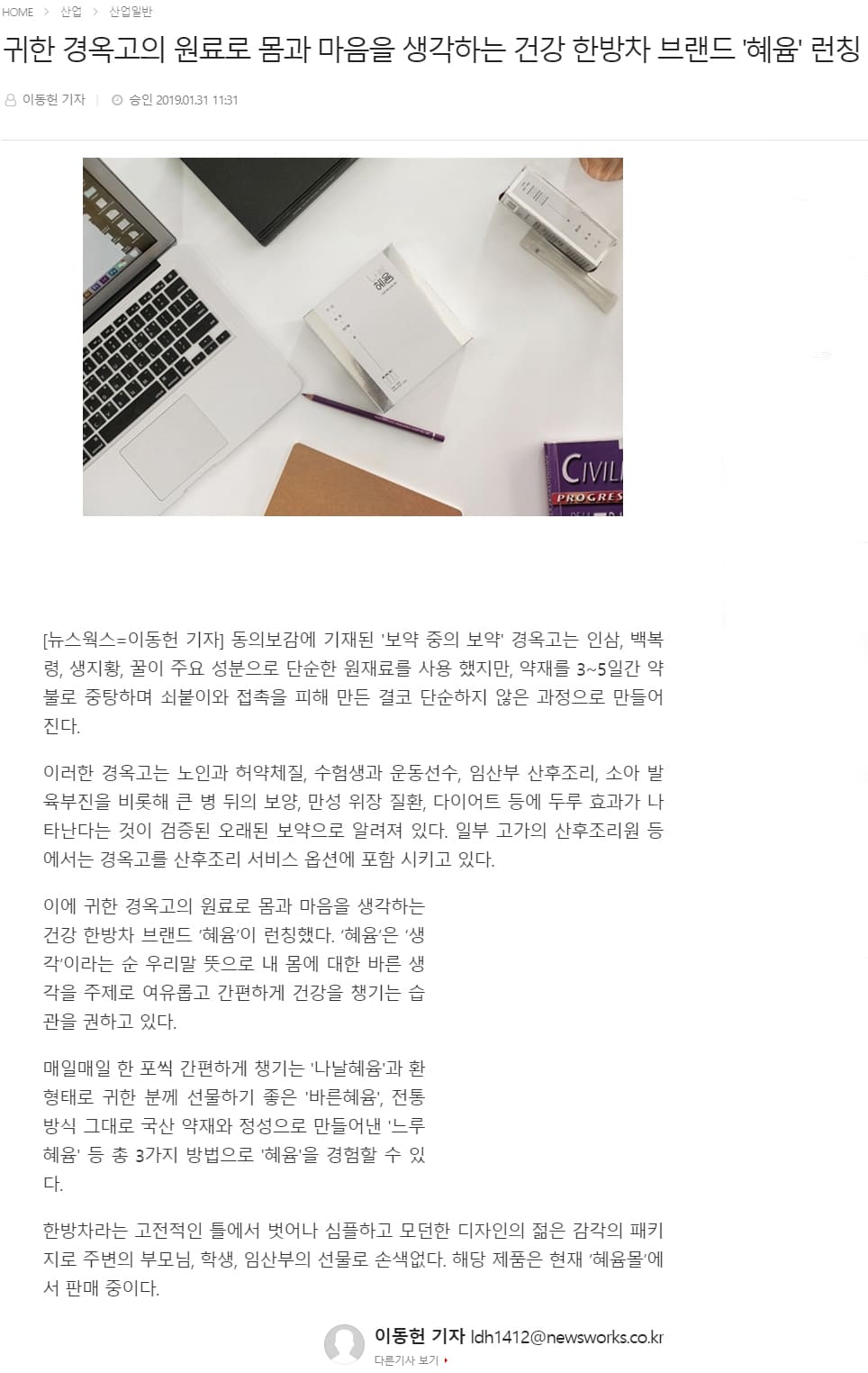 프리미엄 건강식품 브랜드 '혜윰' 론칭 페이지 정보 분류 news 작성일 20-02-05 18:32 본문 목록 이전글한방 건강식품 '혜윰', 간편한 스틱형 포장으로 젊은층 공략 20.02.05